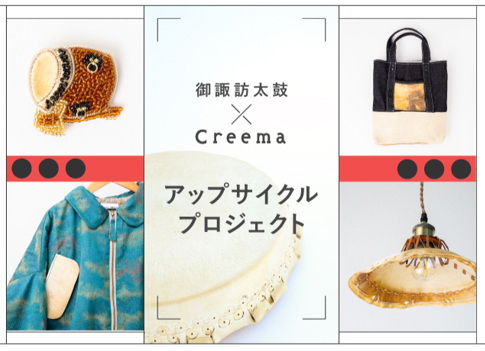 「FIND LOCAL」エリアでは、「御諏訪太鼓×Creema アップサイクルプロジェクト」と「福島・ならは×Creema 藍の畑プロジェクト」の作品を展示する。「御諏訪太鼓×Creema アップサイクルプロジェクト」は、長野県岡谷市で受け継がれる「御諏訪太鼓」の、廃棄される“和太鼓の革”を活用したアップサイクル作品を制作している。和太鼓には、傷のない選び抜かれた国産の牛革が使用されているが、革の張り替えといったメンテナンスで生まれる“端材”や、役目を終えた革の多くはこれまで廃棄されてきたという。会場では、Creema限定で販売されているアップサイクル作品13点を披露する。