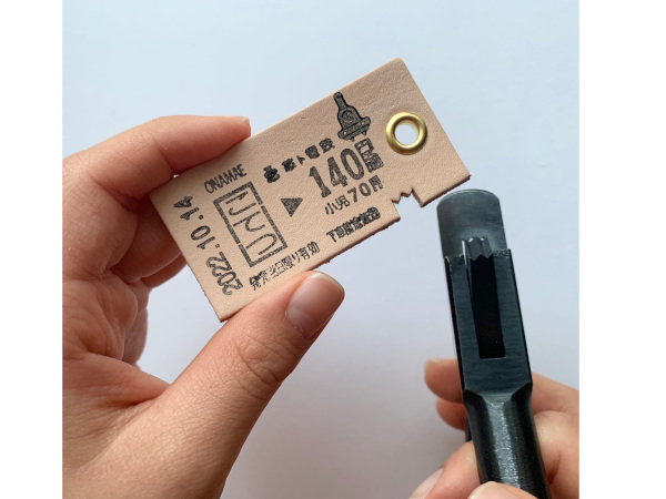 「世界に一つの、かわのきっぷをつくろう」(体験料 2000円/枚、柄のきっぷ+300円/枚)は、名前や誕生日を入れてオリジナル本革きっぷを作るワークショップ。本革なので経年変化も楽しめる。