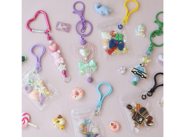 「キャンディバッグやカスタムビーズのバッグチャームを作ろう!」(体験料 700~900 円)は、好きなモチーフを詰め込んで作るバッグチャームのワークショップ。小さな子どもでも参加できる。