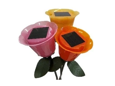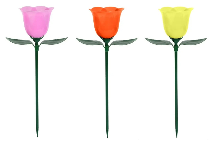 今回、ヒット商品であるソーラーライトのフラワーシリーズから、新たにローズ型を発売した。ソーラー充電式なので配線など不要で、庭の地面や花壇に挿すだけで庭を可愛らしく演出する。