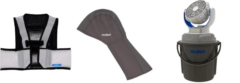 モルテンは、小中学生を主な対象とした暑熱対策アイテムとして、「アイスゲームベスト」「サッカーキャップ用インナーキャップ」(サッカーキャップの下に着用するインナーキャップ。帽子本体は付属していない)「アウトドアミストファン」の3商品を、3月12日から順次出荷を開始し、公式オンラインや全国のスポーツ用品店などで販売を開始した。