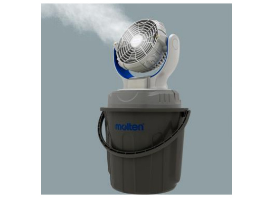「アウトドアミストファン」は、屋外のスポーツ現場における暑熱環境を効率的に整えるバッテリー式ファン。電源のない屋外グラウンドでも使用でき、プレクーリングやクーリングブレーク時の環境整備をサポートする。プレーヤーだけでなく、大会運営スタッフ、レフェリーや保護者など、サッカーファミリーの全体の暑熱負荷を軽減し、個人装備だけでは補いきれない環境づくりを担う。ミストの気化熱で冷やされた空気を送風。バッテリー駆動で約5.5時間使用可能でバッテリーのないグラウンドでも安心だとか。3段階風量調整、左右70°の首振り機能になっている。バケツ収納型で持ち運びが簡単だという。