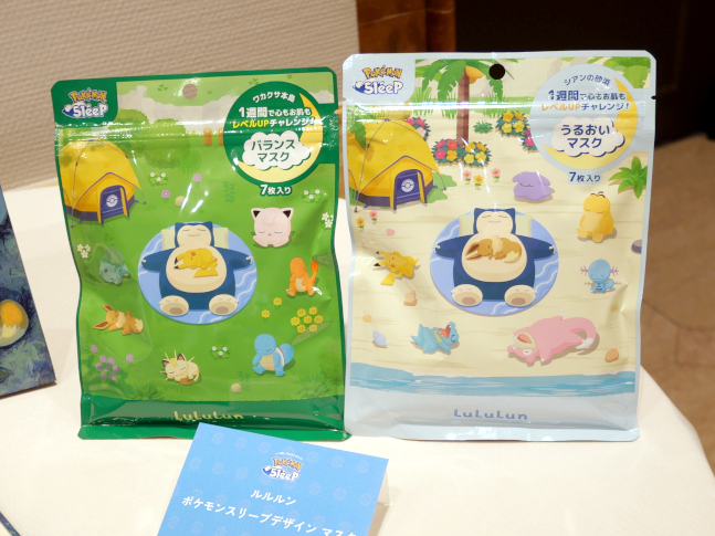 「また、フェイスマスクブランド『ルルルン』とのコラボレーションフェイスマスクを3月25日から、ルルルン公式オンラインストアで先行販売する。『Pokemon Sleep』に登場するフィールド『ワカクサ本島』『シアンの砂浜』に合わせて、2種類のフェイスマスクを展開。パッケージには、各フィールドで出会えるポケモンたちをデザインし、フィールドの植生をイメージした美容成分を配合している」と、「Pokemon Sleep」の新たなコラボ施策についても発表した。