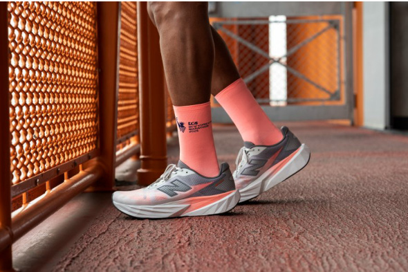 フルマラソンで勝利を目指すエリートランナーに向けた反発弾性‧エネルギーリターンを追求するトップモデル「FuelCell SuperComp Elite v5」から今年のNYCマラソンを記念した限定コレクションが登場する。反発弾性に優れたカーボンプレート、PEBA配合のFuelCellが極限まで研ぎ澄まされた軽量形状になり、前足部での蹴り出し時に驚異的な推進力を実現する。