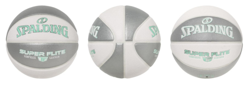 「SUPER FLITE WHITE x SILVER x MINT(スーパーフライト ホワイトxシルバーxミント)」は、ホワイトとシルバーのオルタネートパネルにミントカラーのロゴが目を引く合成皮革バスケットボールとなっている。