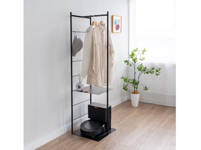 脚を三脚にしているため、ロボット掃除機のごみ回収や水補充が楽にできる。また、ハンガーバーやサイドバー付きで、洋服や帽子、バッグなどをたっぷりかけることも可能とのこと。いずれも圧迫感のないデザインで、部屋をすっきりと見せることができる。