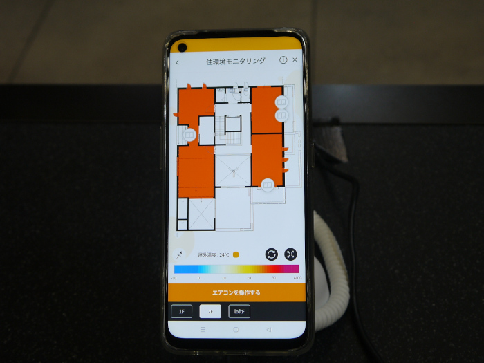 専用スマホで「PLATFORM HOUSE touch」のアプリを操作できるタッチコーナーも設置しており、「図面連動型のわが家リモコン」、「セルフホームセキュリティ」、「温湿度センサーによる住環境モニタリング」などの機能を体験することができた。