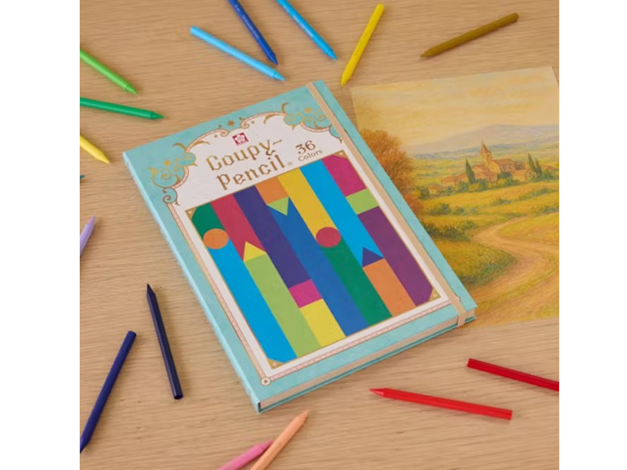 サクラクレパス、絵本のようなデザインのA4サイズ・薄型ケース「クーピーペンシル 36色セット(ブック型ケース入)」を販売