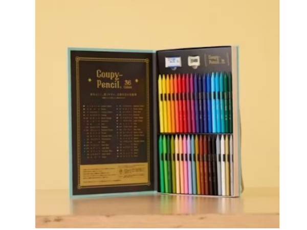 同商品は、金銀を含むバランスの良い36色を配色し、多彩な色表現を可能にしたセット。軽量で薄型のブック型ケースは持ち運びに便利で、A4サイズのスリムな設計にウレタン仕切りを施すことでクーピーをしっかり固定、立てたまま本棚に収められ、収納性にも優れている。洋書や、絵本のようなパッケージデザインは、親から子へのプレゼントや、イラストを趣味とする大人向けのギフトとしても最適で、「携帯性・デザイン・色数の豊富さ」などに優れ、実用性とデザイン性を両立させた。