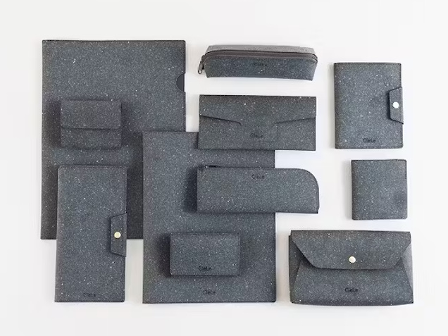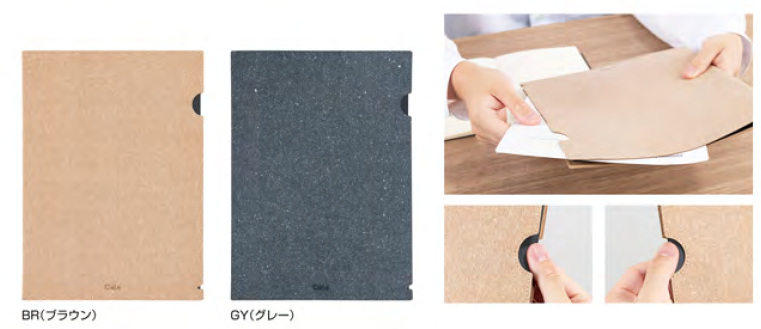 「CleLe(クルレ)」は、革製品を製造する際に出た革の余りや破片などをアップサイクルした皮革繊維再生複合材でつくられた環境にやさしい文具シリーズ。天然皮革の端材からできた素材のため、本革製品と同じく、長く使うほどに味わいが深まり、経年変化を楽しむことができる。