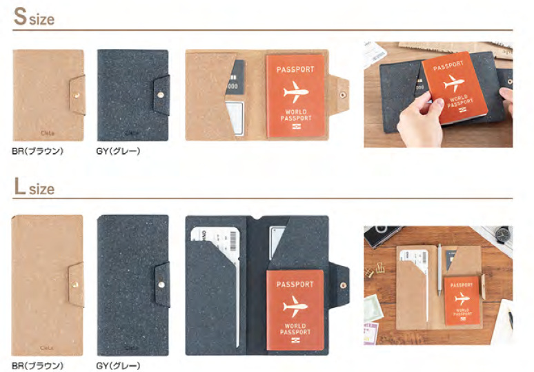 「クルレ パスポートケース」は、パスポートと旅券、カードや紙幣などをスマートに持ち運べる2つ折りのパスポートケース。パスポートがぴったり収まるSサイズと、パスポートと旅券、紙幣やカードなどたっぷり収納ができるLサイズの2サイズをラインアップする。