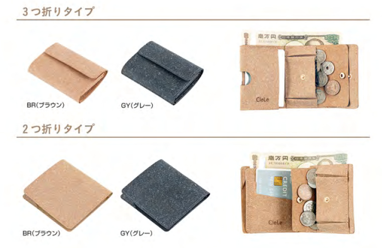 「クルレ ミニマムウォレット」は、小さくて持ちやすいコンパクトなウォレット。使いやすく大容量なのにコンパクトな3つ折りタイプと、ポケットに入れても気にならない極薄仕様の2つ折りタイプの2種類をラインアップする。マチ付きのためたっぷり収納できる。
