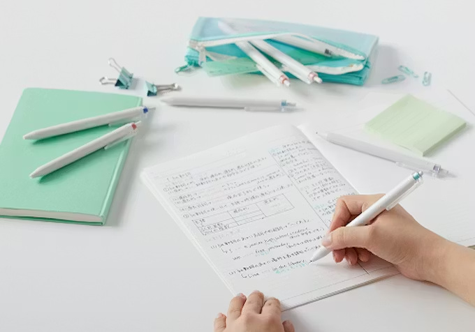 「ジュース プラス」は、「イイコト、プラス。」をスローガンに、忙しい学生の毎日に寄り添い、筆記へのストレスを軽減する新しいゲルインキボールペン。学生は、授業中のノートや教科書への書き込みなど、さまざまな筆記シーンにスムーズに対応する必要がある。また、同社が実施した学生を対象とする調査では、ボールペン購入時に重視する点として「書き心地」が最も多く、また購入価格帯も「100円台」という回答が多く見られ、「書き心地とコストパフォーマンスの良さ」が求められていることがわかった。現在、ゲルインキボールペンはボールペン市場において重要な位置付けであり、消費者ニーズに応える多様な製品が展開されている。その様な背景から、今回、「ジュース プラス」の発売に至った。