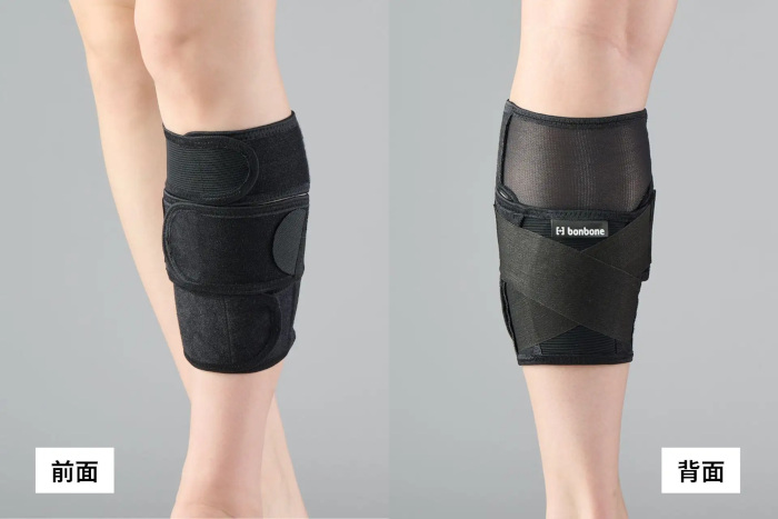 本体ベルトを左右互い違いに止めていく新しい構造を採用した。これによって、ふくらはぎの形状にしっかりと追従し、ふくらはぎの「ねじれ」を防ぐ。従来品に比べてフィット感が高まり、激しい動きの中でもしっかり固定する。