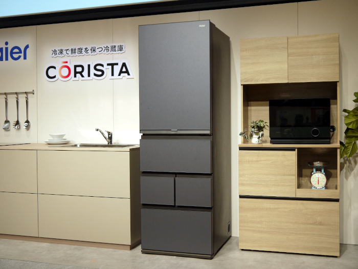 「『CORISM』は、0~8℃まで自由に温度を調節できる変温室を備えており、保存する食材に合わせて温度を使い分けることができる。さらに、業界最薄の594mmと放熱スペースゼロでキッチンからはみ出ずにスタイリッシュに設置できるデザイン性も特徴となっている」と、各商品のターゲットに向けた個別特徴もアピールした。