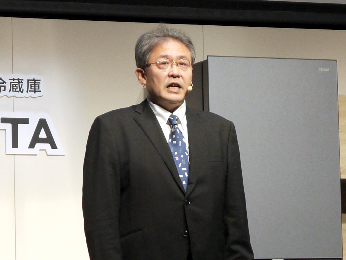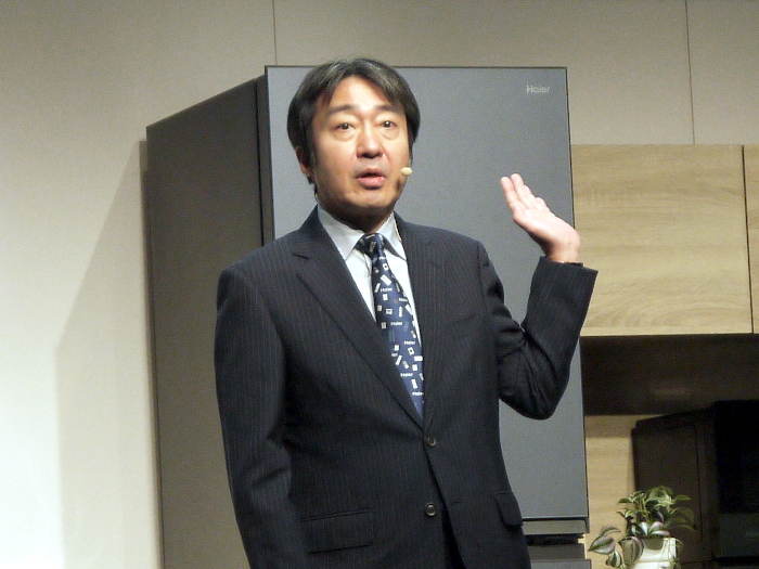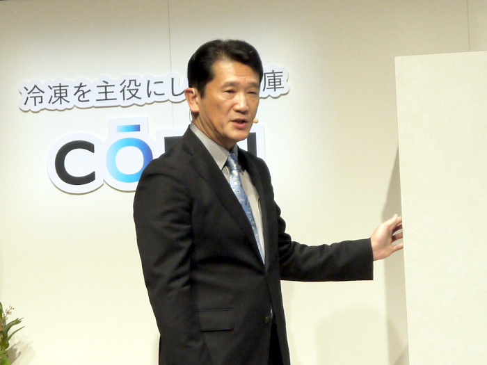 「当社は、グローバルで7大ブランドを展開し、世界中の消費者の多様なニーズを満たしている。日本においては、ハイアールブランドとアクアブランドで、主に家庭用の洗濯機・冷蔵庫・掃除機、業務用の洗濯機などの商品を展開している」と、ハイアールジャパンセールス 執行役員 副社長の乾修明氏が挨拶。「当社では現在、白物総合家電メーカーを目指し、新規カテゴリーへの参入や既存カテゴリーの強化を図っている。その中で、日本市場では、大容量、ハイエンドモデル商品の展開に注力している。そして今回『これからは、冷凍基準。』というコンセプトのもと、2023年に発売した冷凍を主役にした冷蔵庫『CORU』に続き、冷凍で鮮度を保つ冷蔵庫『CORISTA』と、冷凍を自由にする冷凍庫『CORISM』の2商品を新たに上市する」と、新商品を発売する背景を述べた。