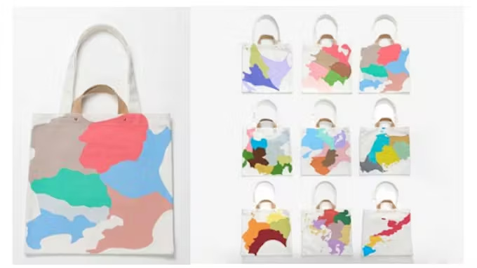 「全国9エリアから選べるスクエアトートバッグ入り福袋」では、スクエアトートバッグは肩がけと手持ちの2way仕様で地図を大胆にデフォルメしたデザインとなっている。北海道、東北、関東、中部、近畿、中国、四国、九州、沖縄の9つの地方から選べる。スクエアトートバッグを含む総額約1万1000円(税込)相当の地図柄アイテムが入っている。