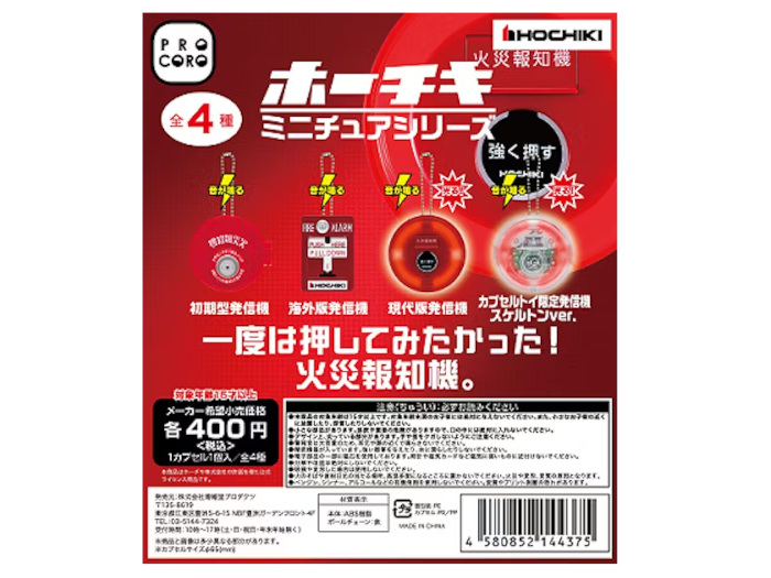ホーチキは、火災報知機カプセルトイ「ホーチキ ミニチュアシリーズ」を、12月24日から、全国の「ガチャガチャの森」店舗で順次発売する。