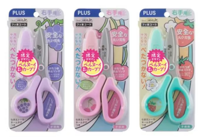 プラスは、家庭用はさみのNo.1(インテージ SRI+ 日本はさみ市場 2020年8月~2025年7月メーカー別金額シェア)ブランド「フィットカットカーブ」シリーズの子ども用はさみから、くだもののモチーフをあしらった限定デザイン「フィットカットカーブ ジュニア<限定>くだものシリーズ」を数量限定で12月26日から発売する。