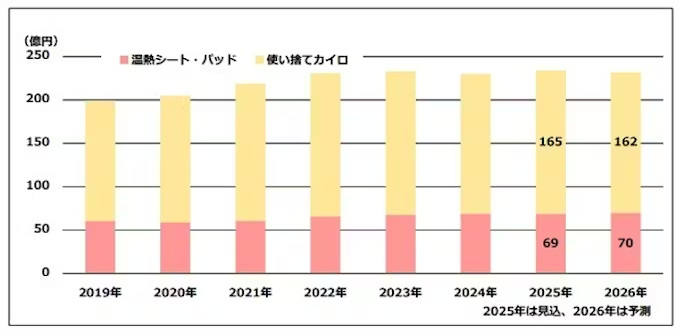 富士経済、温熱シート・パッドや殺虫剤・歯磨剤などの生活用品市場調査、2026年市場予測では温熱シート・パッドが70億円に