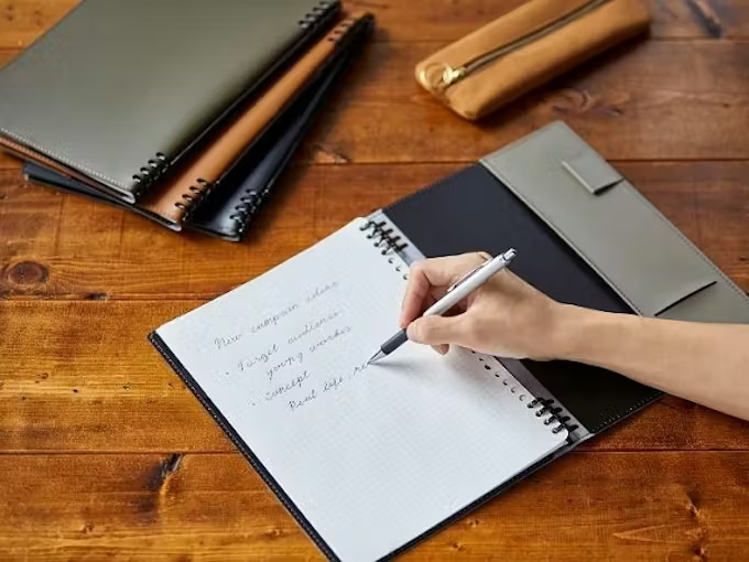「レザフェスU リングノート テフレーヌ」は、実用性と上質さを兼ね備えたリングノート。リングが手にふれにくく快適な書き心地を実現した「テフレーヌ」の仕様に、合皮製の表紙で高級感を加えた。