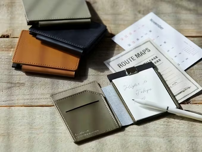 「レザフェスU スライドメモパッド」は、合皮製カバーを備えたメモパッドになっている。とじ具にスライドクリップを採用し、用紙の入れ替えが簡単にできる。