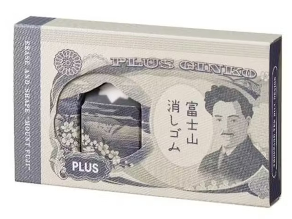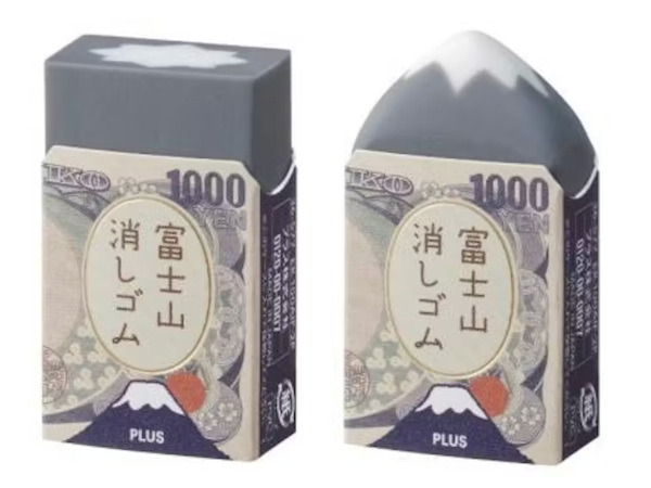 プラス、「エアイン 富士山消しゴム」からお札をイメージした「エアイン 富士山消しゴム<限定>お札富士山」を発売