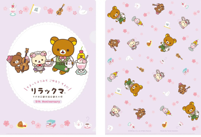 千代田区観光案内所でしか手に入らない周年記念グッズとして、「クリアファイル 5周年記念ver.」は、観光大使リラックマたちがカフェでかわいくお出迎え&新しい衣装で新登場。千代田の魅力いっぱいの5周年記念デザインとなっている。