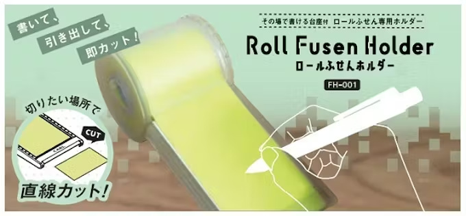 従来のロール式ふせんは、先にふせんを切り取る方式のため、いざ書き始めたら文章が付箋におさまらず書き直しが必要になると言った不便があった。同商品はホルダー上でメモした後に切り取ることできるため、書く量に合わせてちょうどいい長さで使うことができるのが最大の特長となっている。無駄なくふせんを使えるストレスフリーの商品だという。