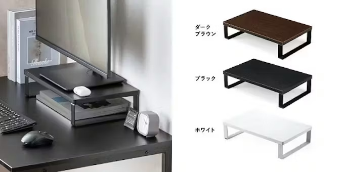 特徴は、幅40cmのコンパクト設計によって、ノートパソコン用デスクや省スペースなワークデスクにも無理なく設置可能。モニター下の空間を収納として活用できるため、デスク上が自然と整理され、作業スペースが広がる。