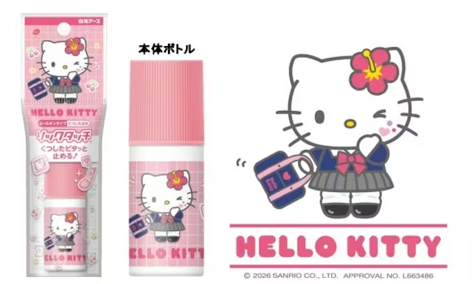 白元アース、くつしたのズレ落ちを防ぐロールオンタイプの液体くつした止め「ソックタッチ ハローキティ」を数量限定発売