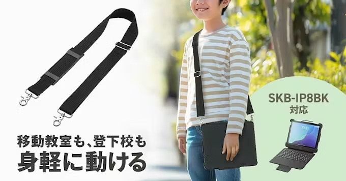 サンワサプライ、iPad第10世代・A16専用ケース付き一体型キーボードに最適なショルダーベルト「PDA-ST01」を発売