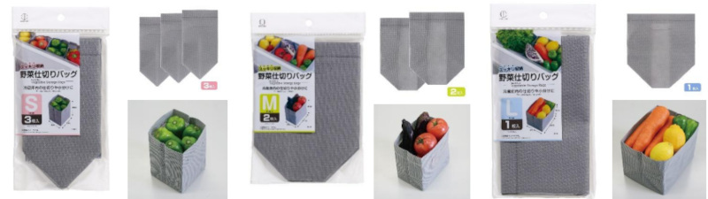 KOKUBO(小久保工業所)は、冷蔵庫内の野菜の仕切りや小分け収納に便利な不織布製の袋「野菜仕切りバッグ」S・M・Lを発売する。