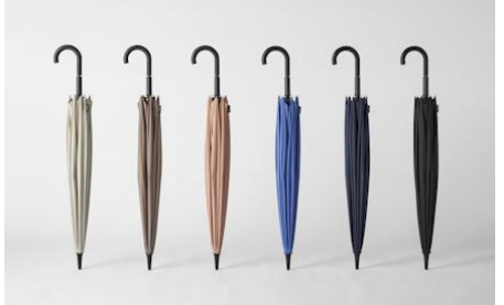「Shupattoアンブレラ」は、ベルトや留め具のない、閉じるだけで一気にたためる長傘。とじる動きに連動して骨が回転し、軸を中心に生地をくるくると巻き込む独自の機構を開発した。最後に手で生地をまとめたり、ベルトで留める必要がなく、手を濡らさずにたためる。また、スライダーを上下するだけで開閉できるボタンレスロック方式で、ボタンを押す手間もない。荷物を持っている時、電車・バス・タクシーに乗る時、お店に入る時など、雨の日の傘をたたむ煩わしさから解放される。