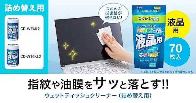 サンワサプライ、パソコン・スマートフォンの画面の指紋や油膜をサッと落とすウェットティッシュクリーナーを発売