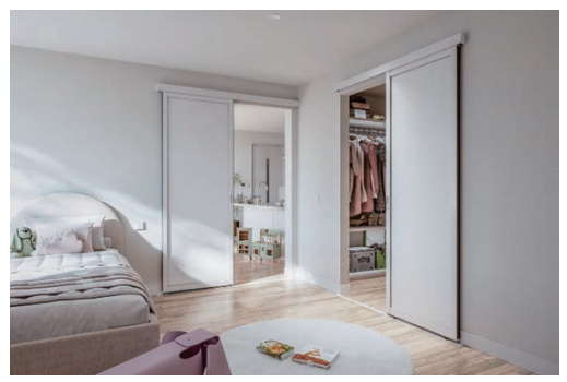 従来の天井付け仕様に加え、壁面にしか下地がない場合に対応可能な「正面付け」が登場する。出入口扉、キッチン収納、クローゼットの目隠しなどに使用できる。意匠性を高めるコンパクトなレールカバーは、ホワイトとブラックを用意。オプションの「ソフトクローズ機能」は、勢いよくパネルを動かしてもゆっくりと静かに閉まり、指の挟み込みやパネルの衝突音を防止する。