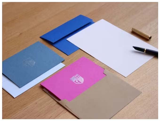 カードへのデザイン箔押しサービス“My Emblem mini(マイエンブレム ミニ)”が、関西初登場。カードと刻印の図案、箔のカラーを自由に組み合わせて、特別なカードを作ることができる。カードに使用するのはドイツ「グムンド社」の48色の二つ折りカード。繊維から染めた紙の鮮やかな発色と、どの色を組み合わせても美しく映えるように計算された絶妙なカラーリングが特徴となっている。