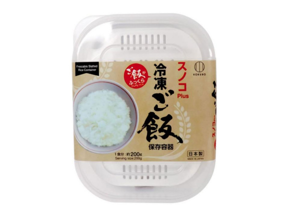ポリプロピレン製の容器とフタにスノコ付き。1食分約200gのご飯をコンパクトに冷凍保存できる。電子レンジで温めると、スノコ効果で余分な水分がしっかり切れて、冷凍ご飯をふっくらおいしく食べられる。薄型なので、全体がムラなく均一に仕上がる。ラップなしで繰り返し使えるので手軽だとか。容器が透明なので、中に入っているご飯の種類や量が、フタを開けなくてもわかる。