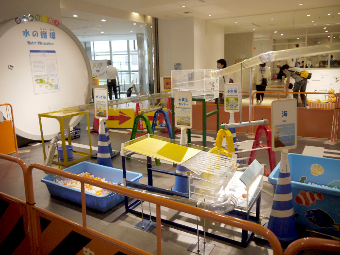 「ボールサーカス」では下水の流れをカラフルな模型で体験。「レインボーシネマ」では、水の大切さや下水道の役割、下水道の仕事についてのショートムービーを上映したりしているという。