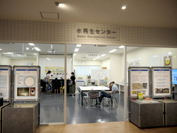 「水再生センター」では、ポンプ所、中央監視室、水質検査室など下水道の仕事の様子を見学したり体験することができるようになっている。「下水道ひろば」には、パネル展示などのイベントを随時開催。