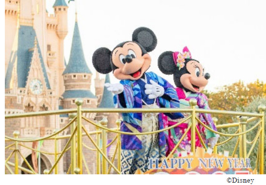 東京ディズニーランドと東京ディズニーシーでは、ミッキーマウスをはじめとするディズニーの仲間たちが、和服姿で新年を祝う華やかな音楽と共にゲストの人々に新年の挨拶をする「ニューイヤーズ・グリーティング」を実施する。