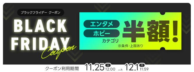 Yahoo!フリマでは、「BLACK FRIDAYクーポン」として、エンタメ関連商品が最大50%OFFとなる「BLACK FRIDAYクーポン」を計6枚配布する。10月27日から11月25日まで開催している「推しクーポン」に続き、推し活グッズや趣味アイテムをよりお得に購入できる機会となる。「PayPayポイント(期間限定)」が当たるフォロー&リポストキャンペーンでは、Wチャンスとして「Yahoo!フリマ」公式Xアカウント(@payfleamarket)をフォローし、対象のポストをリポストした人の中から抽選で10人に、最大10万円相当の「PayPayポイント(期間限定)」が当たるキャンペーンを同時開催する。