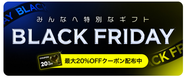 Yahoo!オークションでは、落札した額からその場で値引きになる2種類の「BLACK FRIDAYクーポン」を配布する。利用できるカテゴリ制限なしで、高額商品をお得に落札する機会となっている。