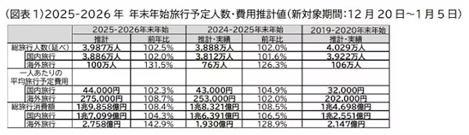 JTB、「年末年始に1泊以上の旅行に出かける人」の旅行動向調査、家族時間を中心に旅行意欲は堅調で消費額は1兆9858億円に