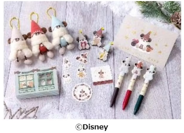 ミッキーマウスと仲間たちがパークをクリスマスらしく彩る手伝いをしている様子などが描かれたきんちゃくやブローチ、ポストカードが登場する。ミッキーマウスとミニーマウスのぬいぐるみバッジは、サンタクロースの帽子をイメージしたキャップやあたたかそうなマフラーなど、クリスマスにぴったりな衣装で身を包んでいる。また、クリスマスのモチーフがデザインされた、ニット素材のトートバッグやウォッシュタオルは、持っているだけでクリスマス気分が盛り上がるグッズとなっている。