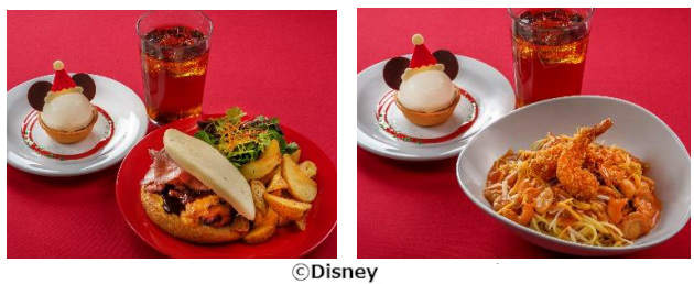 東京ディズニーランドのスペシャルメニューとして、「プラザパビリオン・レストラン」では、ローストビーフとチキンが贅沢に入ったホットサンドが楽しめるスペシャルホットサンドセットや、魚介のうまみがぎゅっとつまったシーフードのトマトクリームソースにエビフライを添えたスペシャルパスタセットを提供する。どちらのセットにも、サンタクロースの帽子をかぶったミッキーマウスをイメージした、濃厚なチョコレートとバニラムースのタルトが付いてくる。