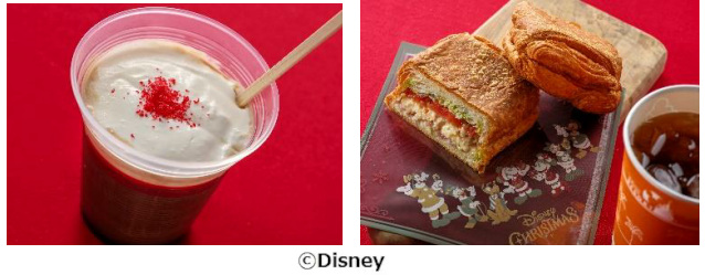 また、寒い季節に身体を芯から温めるホットチョコカクテルを販売する。ココアにコーヒーとコーヒーリキュール、チョコチップを加えた大人な味わいで、冬のパークのお供として楽しめる。「スウィートハート・カフェ」では、デニッシュの食感とクリスマスらしいトマトとバジルの相性が抜群なスペシャルデニッシュサンドを販売するす。生ハムやツナ、ポテト、チーズのうまみをバジルの香りが引き立てる。