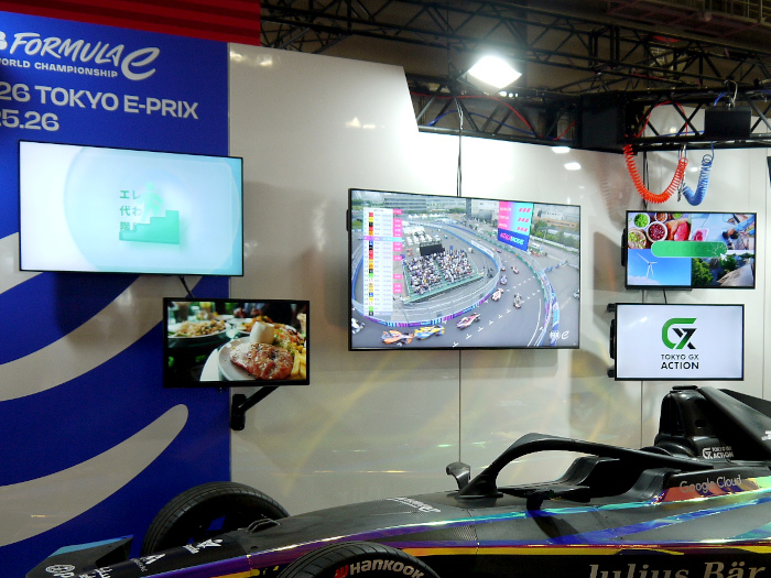 また、「ピット」をモチーフにしたブース内には複数のモニターを設置し、「TOKYO GX ACTIONとは」、「過去の取組実績」、日常の中の「これもGX ACTION」、来年に3回目の開催を迎える「フォーミュラE」東京E-Prixなどを映像で紹介。子どもから大人まで楽しみながらGXを学べるブースとなっている。