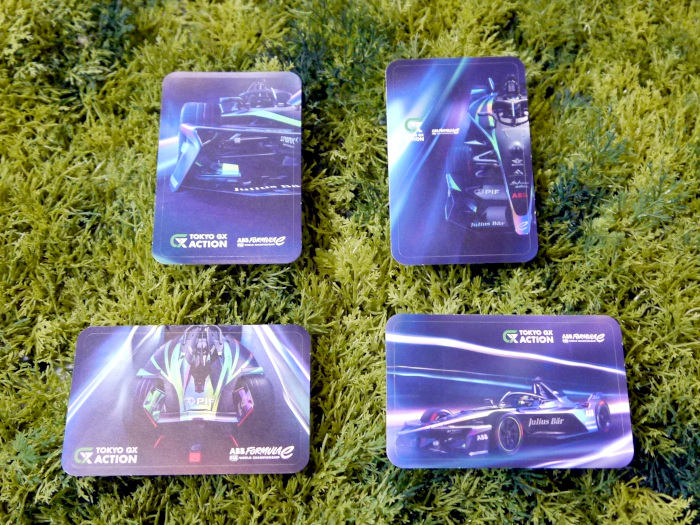 来場者特典として、ブースを訪れた人に、フォーミュラEがデザインされた「TOKYO GX ACTIONオリジナルステッカー」をプレゼントする(全4種からランダムで1枚)。さらに、ブースでアンケートに回答した人には、「マイボトル(真空断熱ボトル)」をプレゼントする。