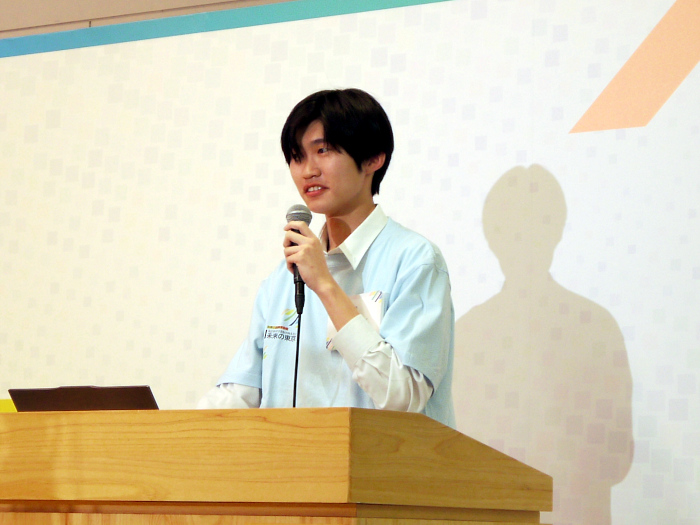 続いて登壇したのは、渋谷教育学園 渋谷高等学校「未来Makers」チーム。外国人駐在員が住みやすい東京を目指す「FASPO構想」を提案した。東京が今後、さらに都市として発展するには、日本国内の枠にとどまらず、国際社会としてつながり、駐在員など優秀な人材を様々な国から受け入れていく必要がある。「FASPO構想」では、行政手続や生活サービスを一元化したアプリ「Federated App」とデジタルプロフィール「Service Passport」によって、外国人駐在員の生活をワンストップで支えるAI多言語プラットフォームを実現。東京の経済発展に必要な人材が住みやすい環境を整備することで、国際競争力を高めることができると強調した。